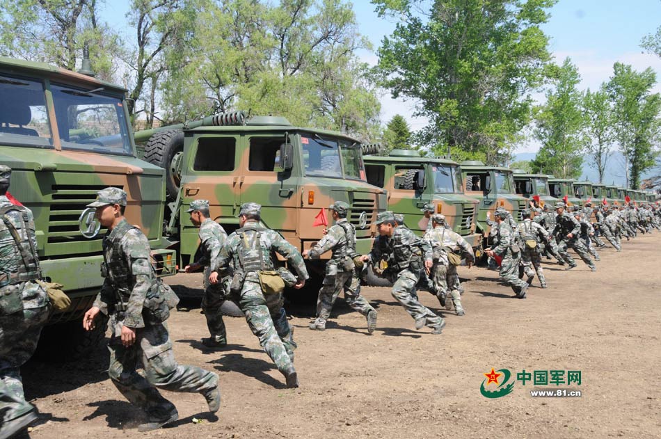 | An artillery regiment of the 16th Group Army conducts a vehicle-mounted gun operation drill on May 21, 2015. (www.81.cn/Liu Yishan) |