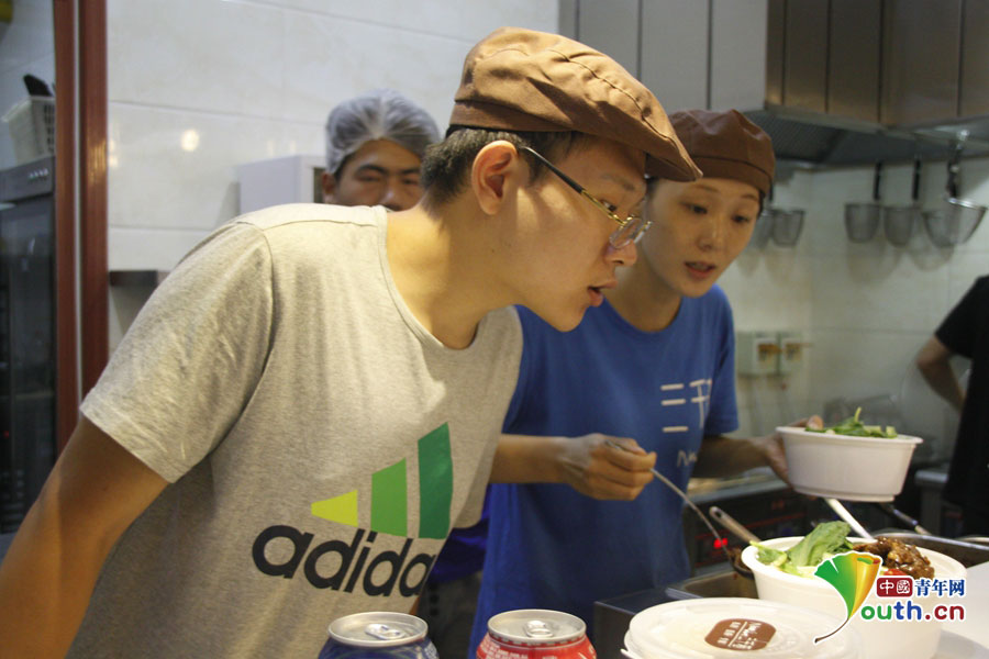 Xu Jin, Zhao Heng and Yan Yingxin are all post-90s college graduates. They run a Chongqing Noodles Restaurant in Beijing. (Youth.cn/Wang Jing)