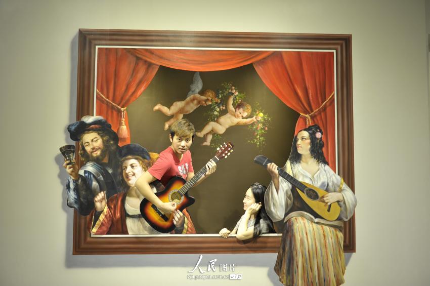 The largest 3D magic city in Asia opened in Guangzhou recently. Visitors can interact with the 3D paintings by posing with them. The photos are interesting because the 3D effect can give a transcending experience to visitors.(vip.people.com.cn/Gao Dianhua)