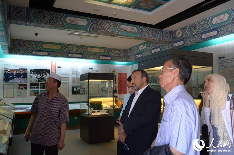 Cultural Counselor of the Embassy of Iran in China Hossein Jalivand, together with a group of Chinese scholars, visits the Niujie Mosque in Beijing, June 3, 2014. (People's Daily Online/Du Mingming)