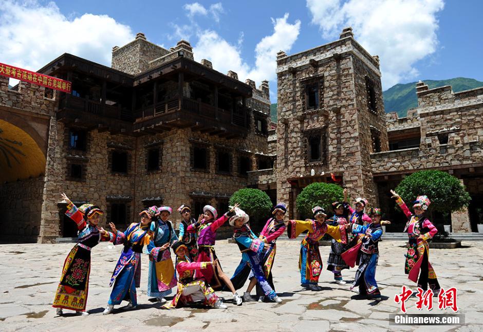 On July 12, 2014, the national fitness team members dressed in the traditional costumes of Qiang girls show both traditional and modern beauty in the run-up to Hong Kong Federation of Bodybuilding and Fitness (HKFBF) International Bodybuilding and Fitness Invitation Championship. (Chinanews.com/ An Yuan)