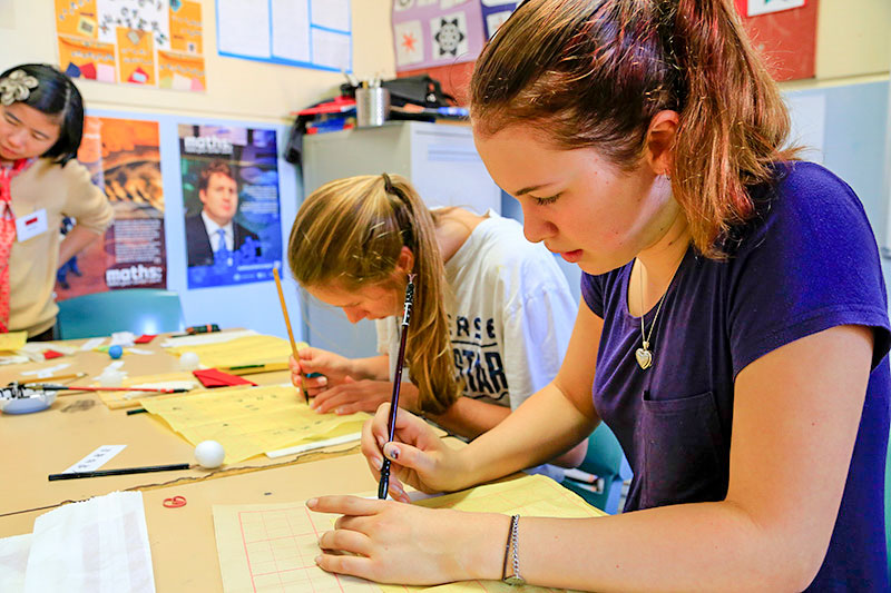 Kung Fu Master from Wudang gave the students a presentation and some basic Kung Fu moves were taught in groups. Meanwhile, workshops of calligraphy, traditional painting, paper cutting and Ceramic Micro Writing were also held in other classrooms around the school.