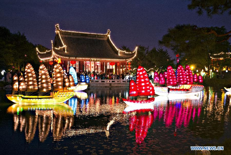 | Lantern works are seen at the Botanical Gardens, Montreal, Canada, on Sept. 20, 2014. (Xinhua/Andrew Soong) |