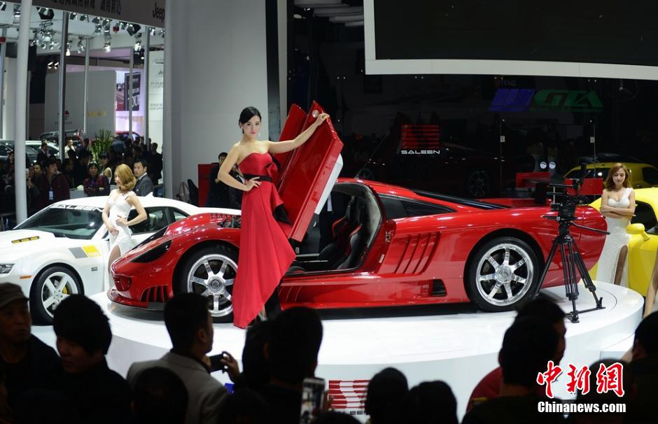 A model presents at the 10th international car exhibition in Changsha, central China's Hunan province on Dec. 11, 2014. The exhibition has attracted thousands of visitors. (CNS/Yang Huafeng)