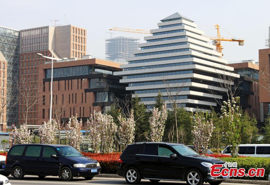 A spinning top-shaped building is under construction in Zhengzhou, Central China's Henan province, March 29, 2015. (Photo: China News Service/Wang Zirui)