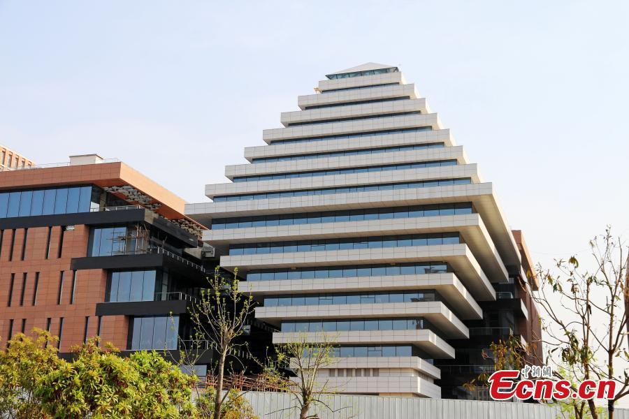 A spinning top-shaped building is under construction in Zhengzhou, Central China's Henan province, March 29, 2015. (Photo: China News Service/Wang Zirui)