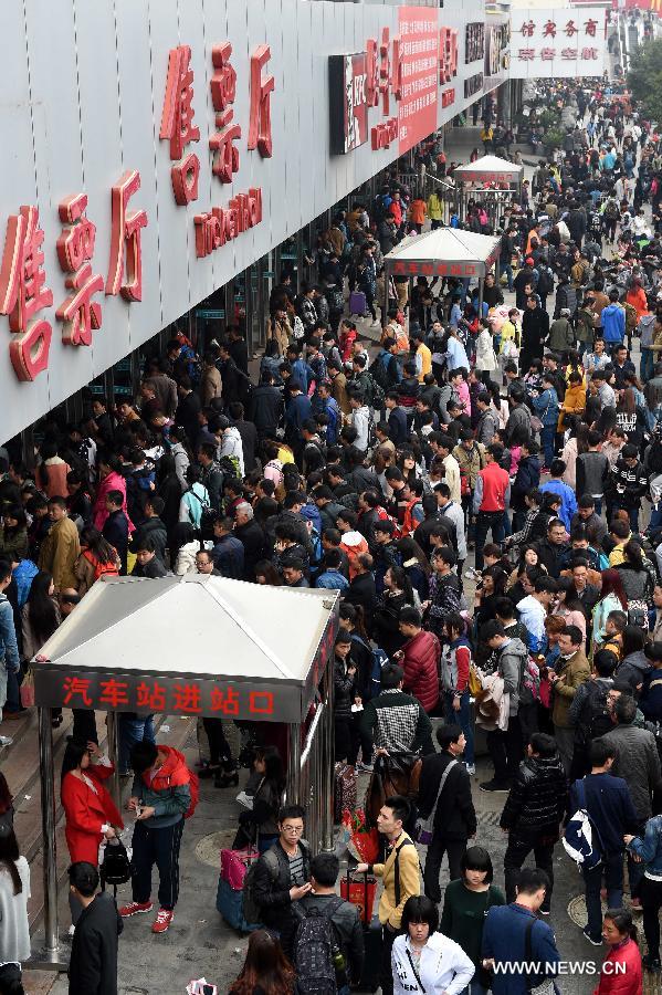 Passengers queue to enter the hall of Zhengzhou Inter-city Bus Station in Zhengzhou, capital city of central China's Henan Province, April 3, 2015. Zhengzhou received a travel rush during China's traditional Qingming Festival, or Tomb-sweeping Day, which falls on April 5 this year. (Xinhua/Li Bo)