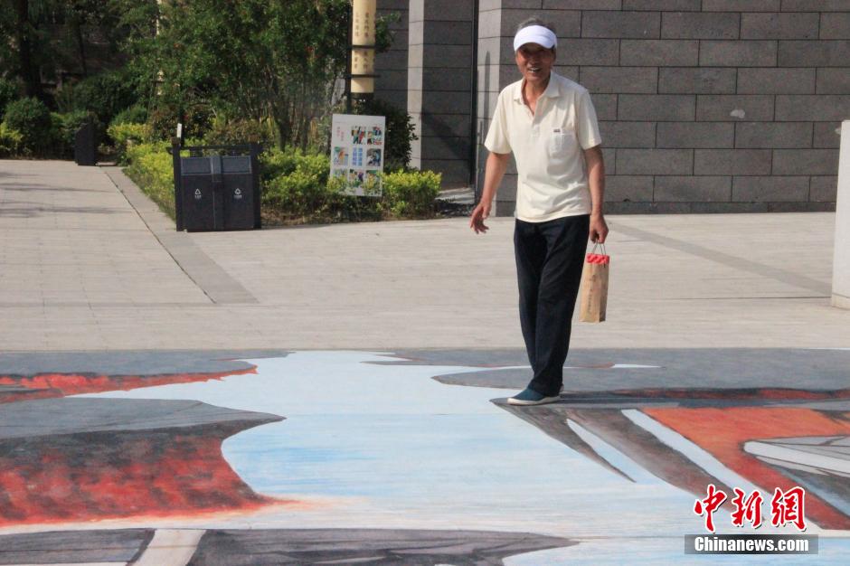 3D street paintings in Xi'an attract many people to take photos with the amazing special effects. Featuring cliff, waterfall, and trap etc., these vivid 3D paintings have become unique scenery on the street of Xi'an. (Chinanews/Fang Qin)