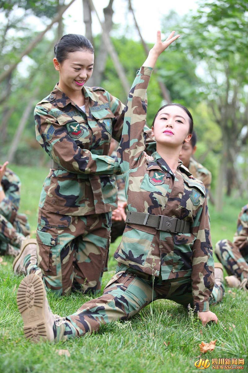 Twins who will become flight attendants take training in Sichuan Southwest Vocational College of Civil Aviation. (Photo/newssc.org)