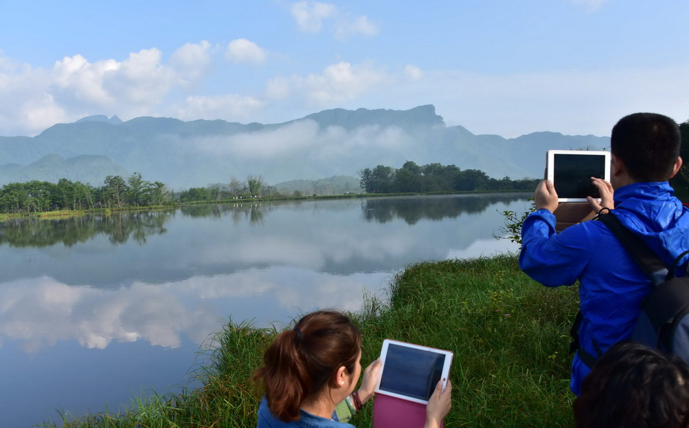 Tourists take photos in Shennongjia Dajiuhu alpine wetland on July 13, 2015. (Xinhua/Du Huaju)