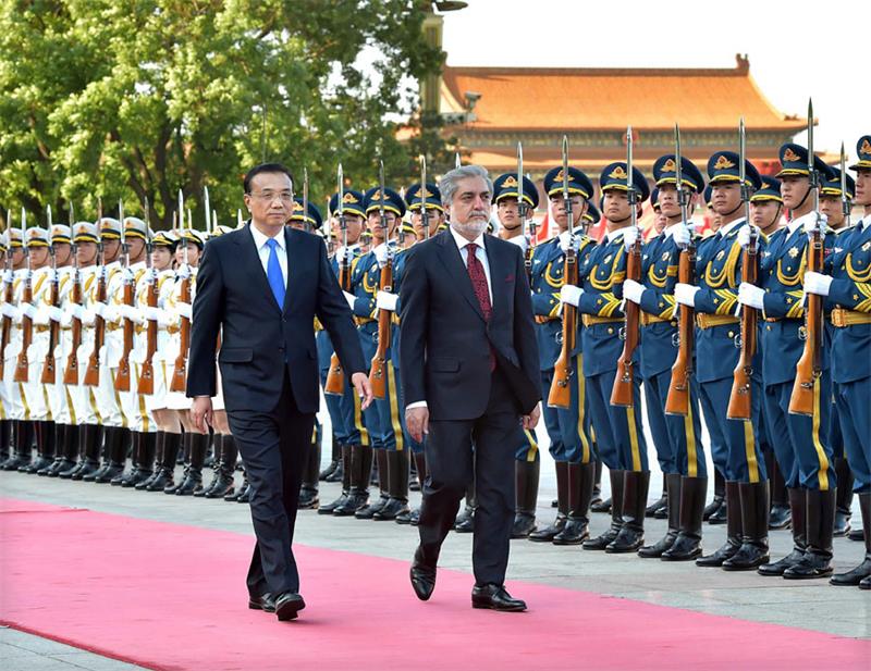 Chinese Premier Li Keqiang holds a welcoming ceremony for visiting Afghan Chief Executive Abdullah Abdullah on May 16, 2016 in Beijing, capital of China. [Photo: Xinhua]
