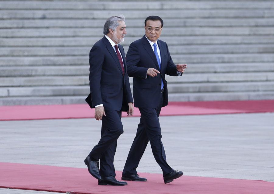 Chinese Premier Li Keqiang has held talks with visiting Afghan Chief Executive Abdullah Abdullah.