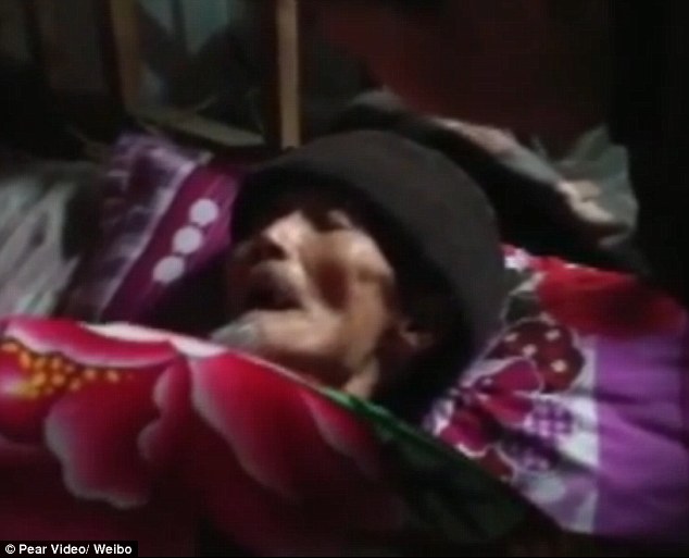 Back to life: The elderly man (pictured) knocked from inside his coffin on January 8 in China