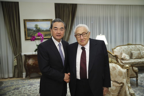 NEW YORK, Sept. 18 (Xinhua) -- Chinese Foreign Minister Wang Yi met here on Monday with former U.S. Secretary of State Henry Kissinger over China-U.S. relations.