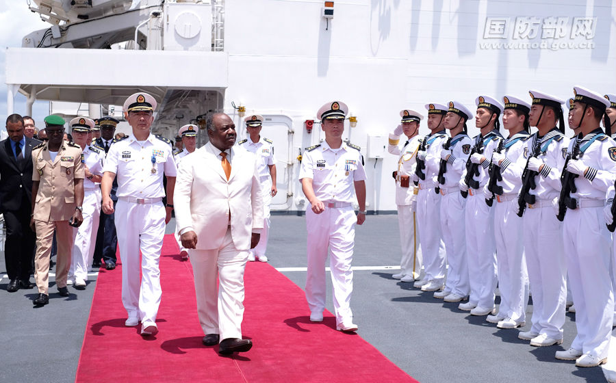 The mission commander Rear Admiral Guan Bailin and others also visited President Bongo at the presidential residence on October 5. The Gabonese defense ministry held a grand ceremony of investiture on October 6, at which it conferred honorary medals to 11 Chinese officers and soldiers, including Guan, who had made outstanding contributions to the China-Gabon exchanges and cooperation.