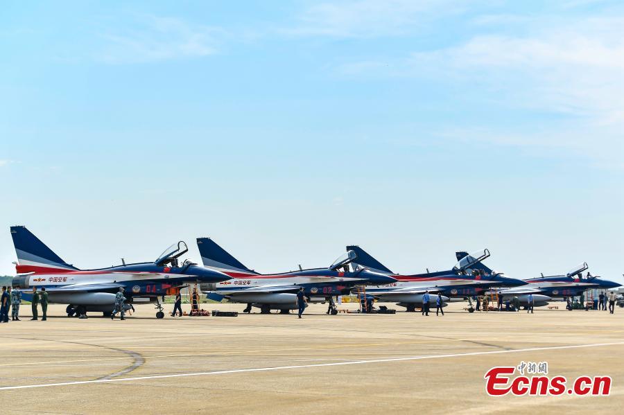 Fighter jets of the Chinese People's Liberation Army (PLA) Air Force's August 1st aerobatics team is seen at an airport in Zhuhai, South China’s Guangdong province, October 31, 2018. The team will perform at the 12th China International Aviation and Aerospace Exhibition (Airshow China). The event will be held in Zhuhai from Nov. 6 to 11. (Photo: China News Service/ Chen Jimin)