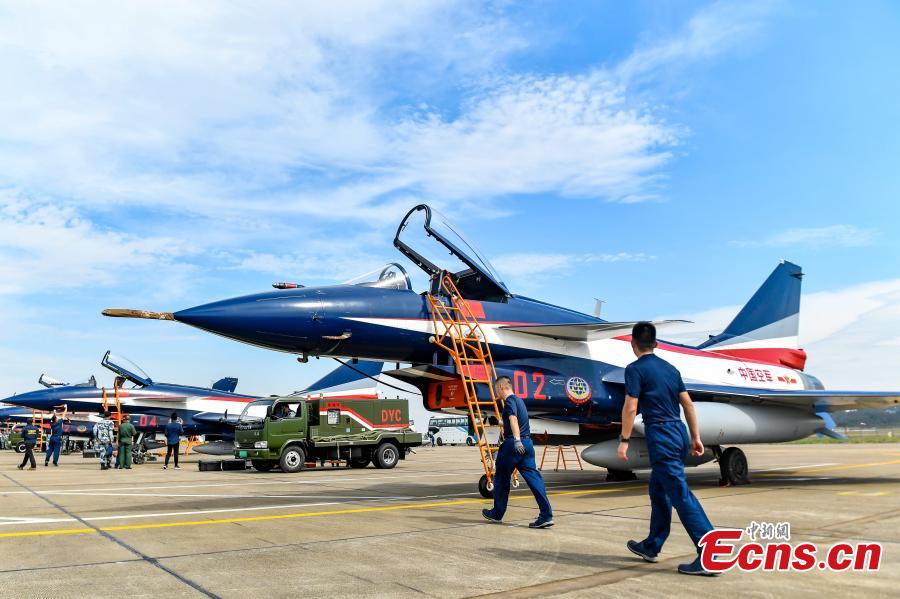 Fighter jets of the Chinese People's Liberation Army (PLA) Air Force's August 1st aerobatics team is seen at an airport in Zhuhai, South China’s Guangdong province, October 31, 2018. The team will perform at the 12th China International Aviation and Aerospace Exhibition (Airshow China). The event will be held in Zhuhai from Nov. 6 to 11. (Photo: China News Service/ Chen Jimin)