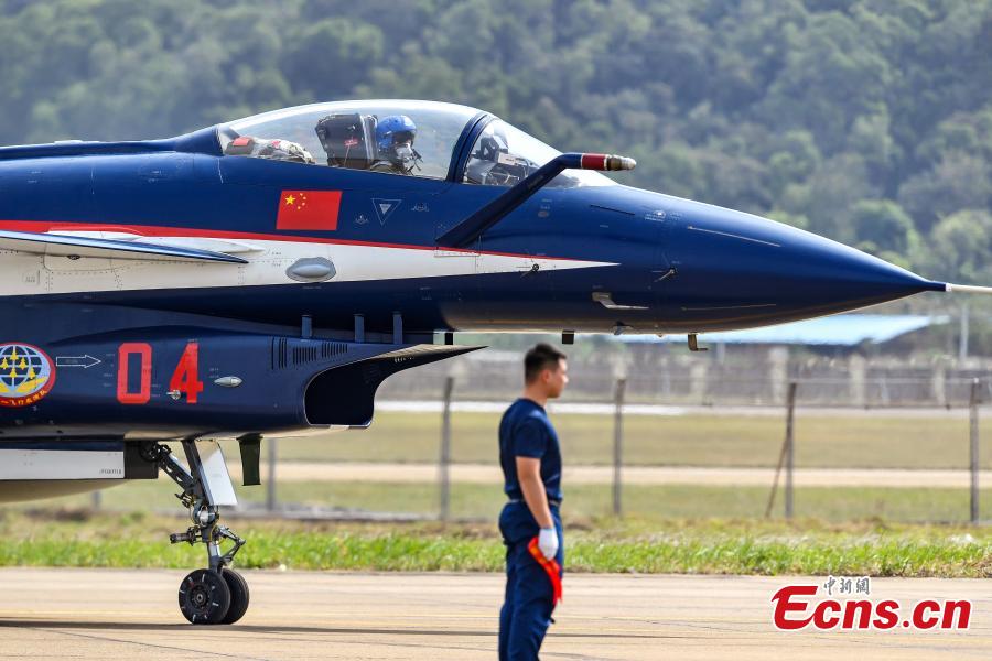 A fighter jet of the Chinese People's Liberation Army (PLA) Air Force's August 1st aerobatics team is seen at an airport in Zhuhai, South China’s Guangdong province, October 31, 2018. The team will perform at the 12th China International Aviation and Aerospace Exhibition (Airshow China). The event will be held in Zhuhai from Nov. 6 to 11. (Photo: China News Service/ Chen Jimin)