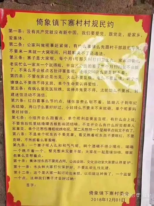 On Dec. 12, the village rules, widely spreading among Internet users, went viral on WeChat platform for guidance on how to deal with what shall be done in daily life.