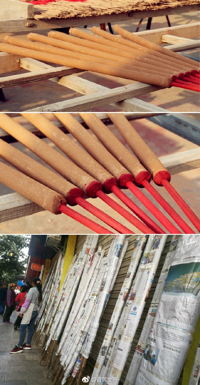 Generally, they make the "incense" by themselves. The highest incense can reach 5m-6m. Burning incense indicates good luck, good fortune, and good future.