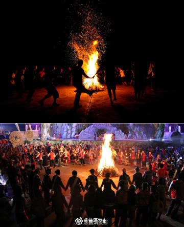 At every festival and at New Year, all ethnic groups in Pu'er like to dance "Three Steps" surrounding a campfire accompanied to Sanxian, Bamboo Flute, and Lusheng.