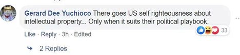 “There goes US self-righteousness about intellectual property,” a Facebook user commented. “Only when it suits their political playbook,” the user added.