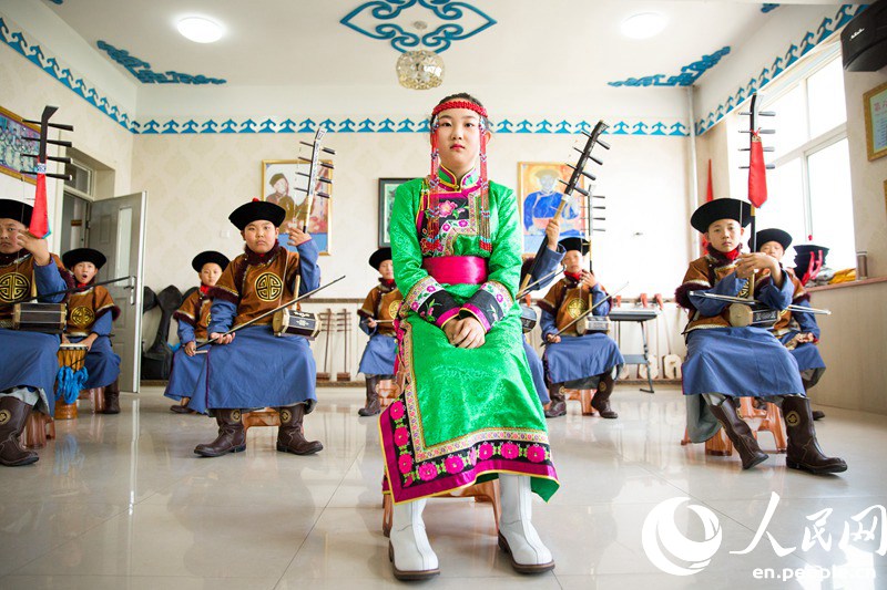 Qinggelt, along with his classmates, has performed üliger in many big cities, including Beijing, as well as introducing the art to the public. [Photo by Tanja Herko]