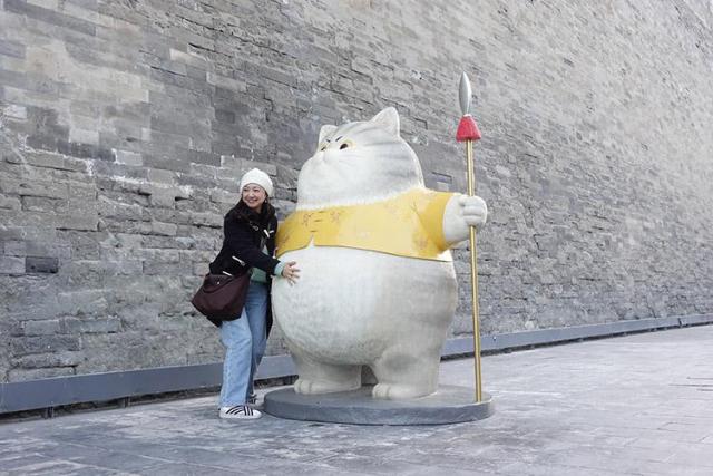 Giant statues of cats, dressed as imperial guards of the Ming and Qing Dynasties, sit near the gate of divine prowess at Beijing’s Palace Museum. Large groups of visitors take pictures with these adorable “royal cats” on Oct. 28, 2019. (The Beijing News/Li Kaixiang)