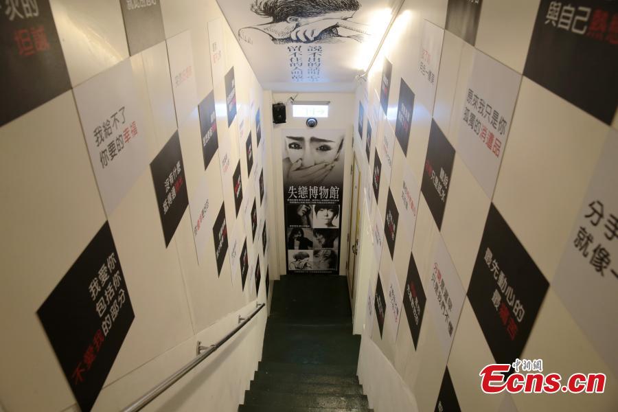 A museum dedicated to failed romance has opened in Hsinchu County of Taiwan island, showing photos, gifts and slogans about broken-hearted stories. (Photo: China News Service/Zhang Yuan)