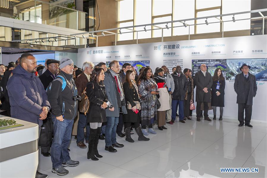 Participants learn about the construction of Shanghai West Bund in Shanghai, east China, Dec. 7, 2019, before attending the upcoming 2019 South-South Human Rights Forum. (Photo by Wang Xiang/Xinhua)