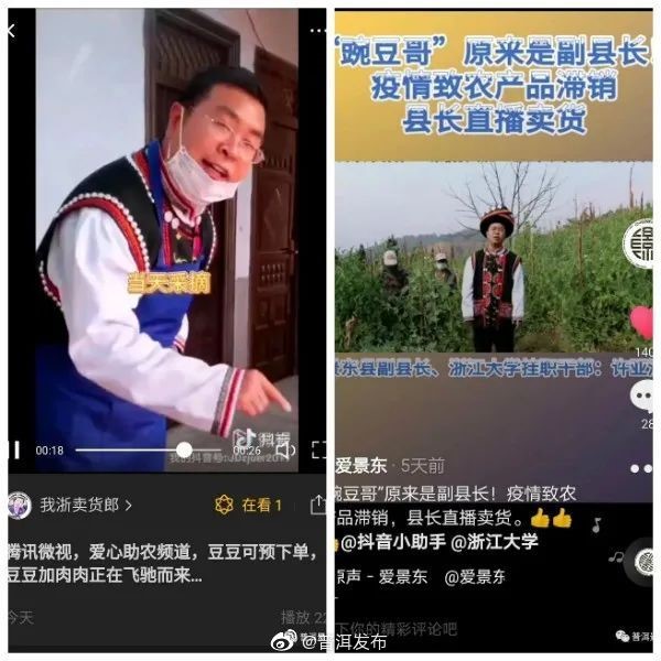 Xu Yazhou, Deputy Magistrate of Jingdong Yi Autonomous County, Pu'er City and the cadre from Zhejiang University with his post retained, was "peddling" online the crystal pea, the local product for poverty alleviation.
