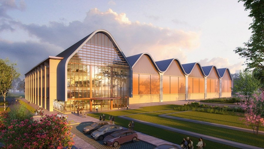 The handout concept image provided by Huawei shows the first phase of a state-of-the-art center to be built in Cambridge, Britain. (Xinhua)