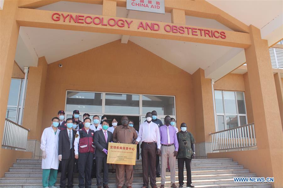 Chinese medical workers and South Sudanese officials pose for a photo during the inauguration ceremony of a cancer screening facility in Juba, South Sudan, on Aug. 25, 2020. South Sudan on Tuesday inaugurated a cancer screening facility whose construction was supported by the Chinese government. China has provided material and technical support to South Sudan to help the world's youngest nation deal with health-related challenges. (Photo by Gale Julius/Xinhua)