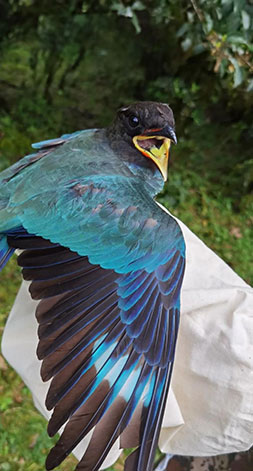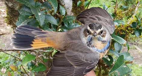 In 2020, two new species, Eurystomus orientalis (above) and Luscinia svecica (below), were discovered among flying migratory birds captured by the Pu’er Bird Banding Monitoring Station.