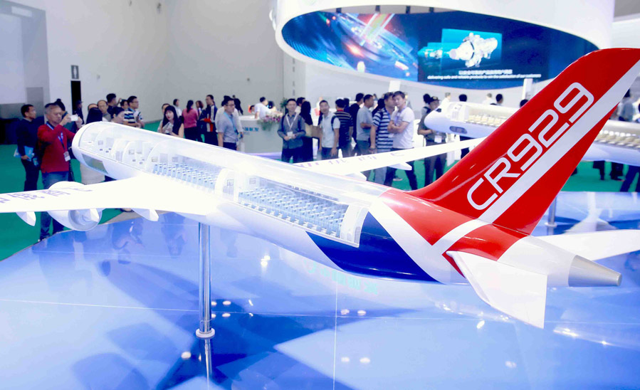 A CR929 jet model is on display at an air show in Beijing. CHEN XIAOGEN/FOR CHINA DAILY