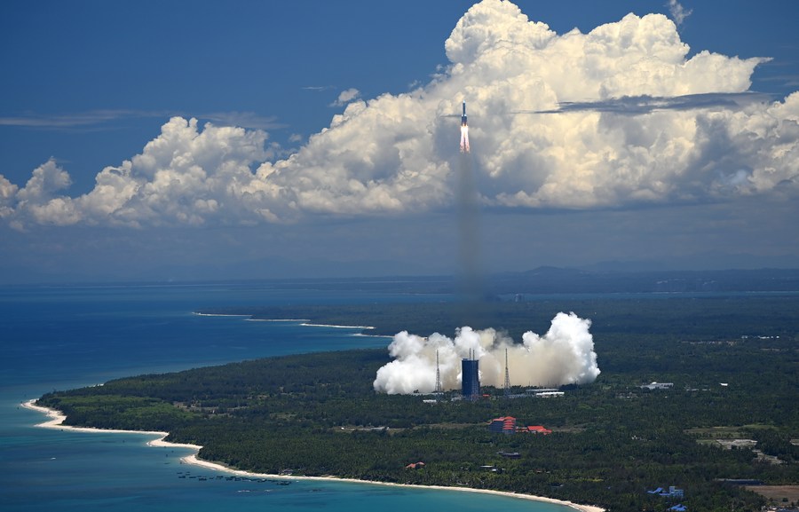 A Mars probe is launched on a Long March-5 rocket from the Wenchang Spacecraft Launch Site in south China's Hainan Province, July 23, 2020. (Xinhua/Guo Cheng)