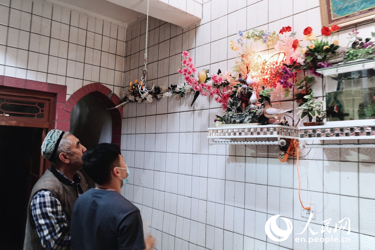Doves are the symbol of Hotan. Dove decorations can be found everywhere in Memtimin's house. (People's Daily Online/Kou Jie)