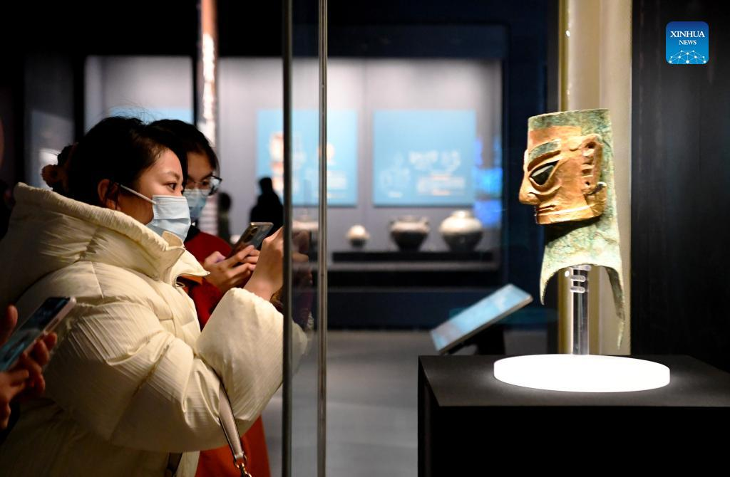 Tourists visit Henan Museum on the third day of New Year holiday in Zhengzhou, central China's Henan Province, Jan. 3, 2022. (Xinhua/Hao Yuan)