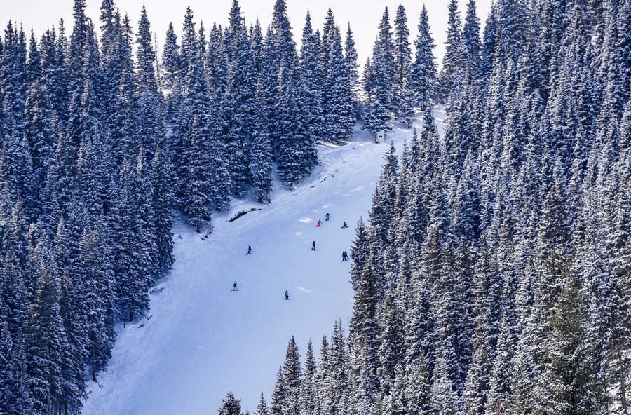 Skiers in action at the Silk Road International Ski Resort in Urumqi, northwest China's Xinjiang Uygur Autonomous Region, Feb. 8, 2019. (Xinhua/Zhao Ge)