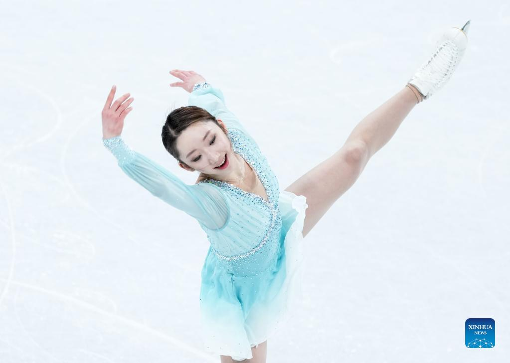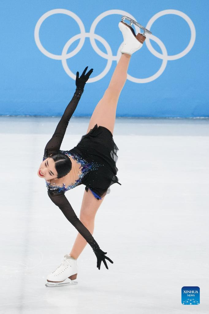 You Young of South Korea performs during the figure skating women single skating short program at Capital Indoor Stadium in Beijing, capital of China, Feb. 15, 2022. (Xinhua/Chen Jianli)
