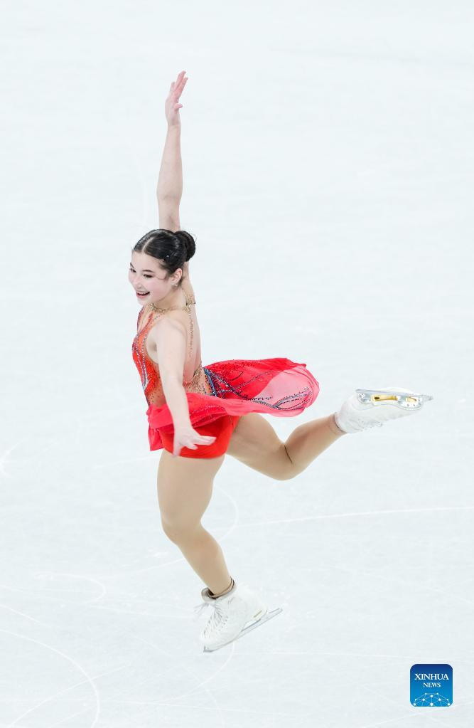Kawabe Mana of Japan performs during the figure skating women single skating short program at Capital Indoor Stadium in Beijing, capital of China, Feb. 15, 2022. (Xinhua/Ma Ning)