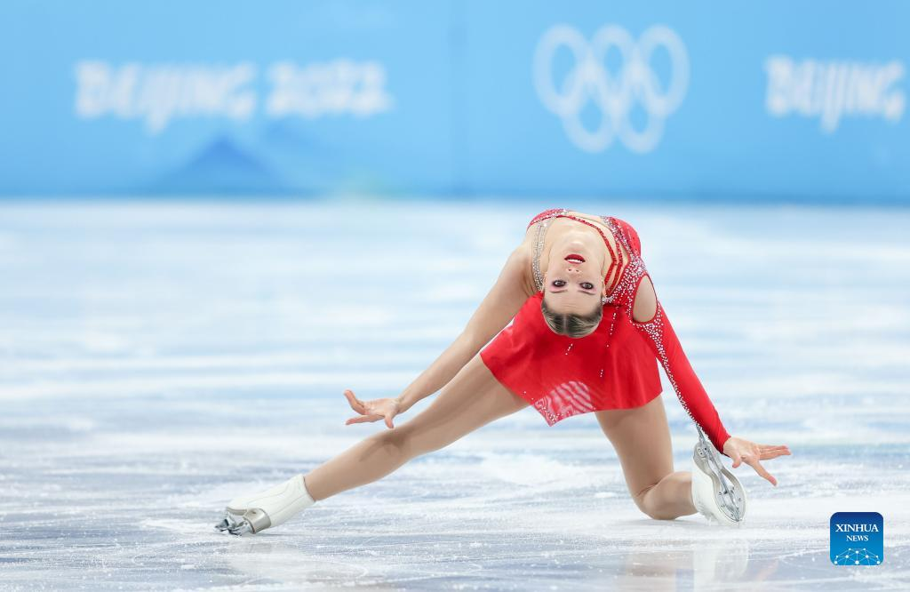 Alexandra Trusova of ROC performs during the figure skating women single skating short program at Capital Indoor Stadium in Beijing, capital of China, Feb. 15, 2022. (Xinhua/Chen Jianli)