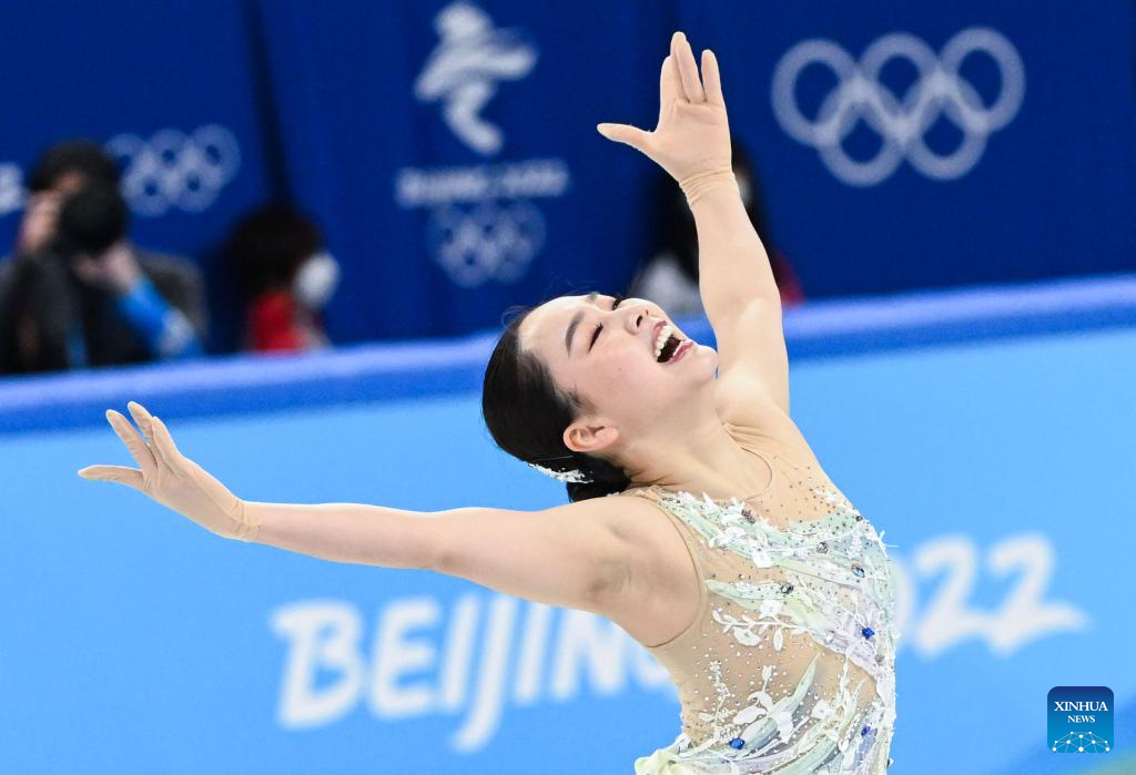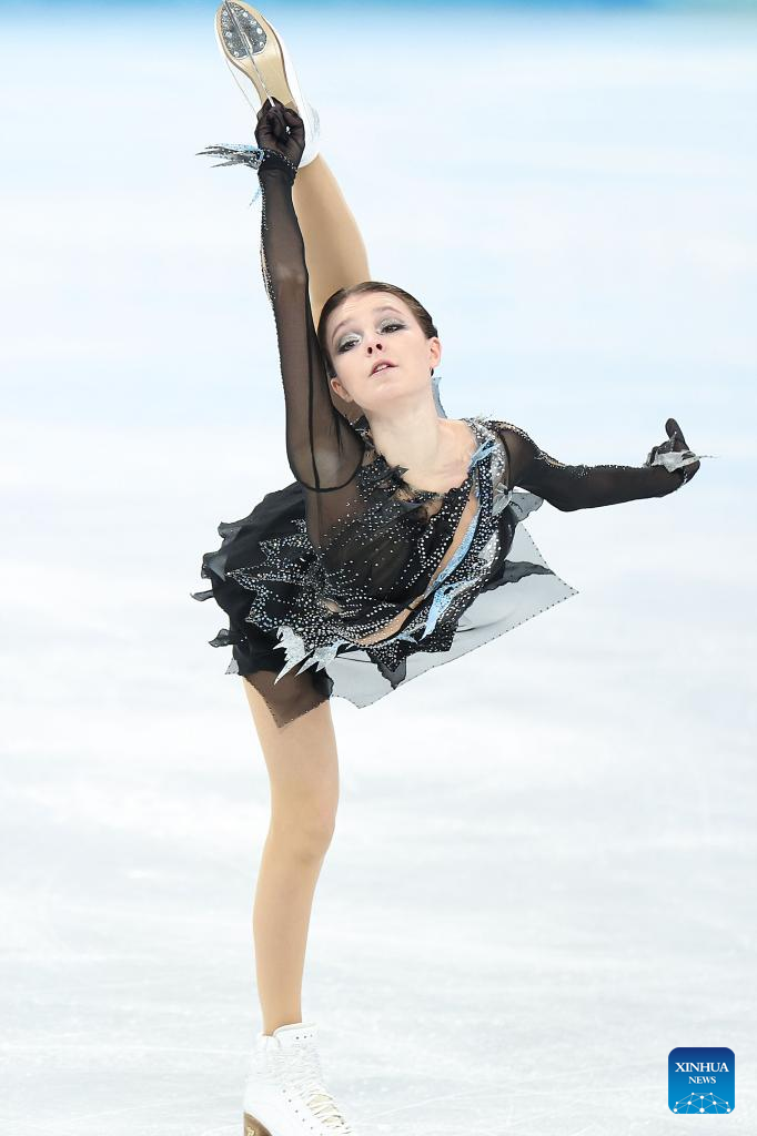 Alexandra Trusova of ROC performs during the figure skating women single skating short program at Capital Indoor Stadium in Beijing, capital of China, Feb. 15, 2022. (Xinhua/Ma Ning)