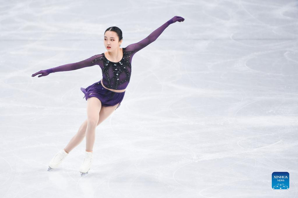 Zhu Yi of China performs during the figure skating women single skating short program at Capital Indoor Stadium in Beijing, capital of China, Feb. 15, 2022. (Xinhua/Li Ran)