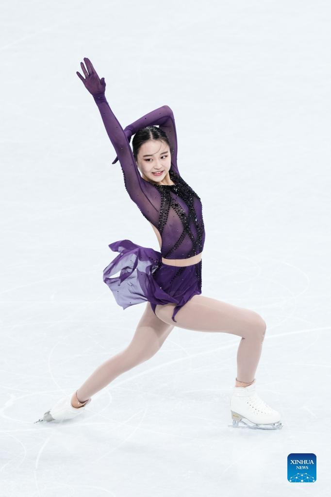 Zhu Yi of China performs during the figure skating women single skating short program at Capital Indoor Stadium in Beijing, capital of China, Feb. 15, 2022. (Xinhua/Xue Yuge)