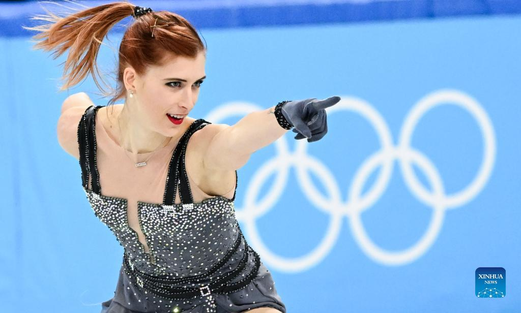 Olga Mikutina of Austria performs during the figure skating women single skating short program at Capital Indoor Stadium in Beijing, capital of China, Feb. 15, 2022. (Xinhua/Chen Jianli)