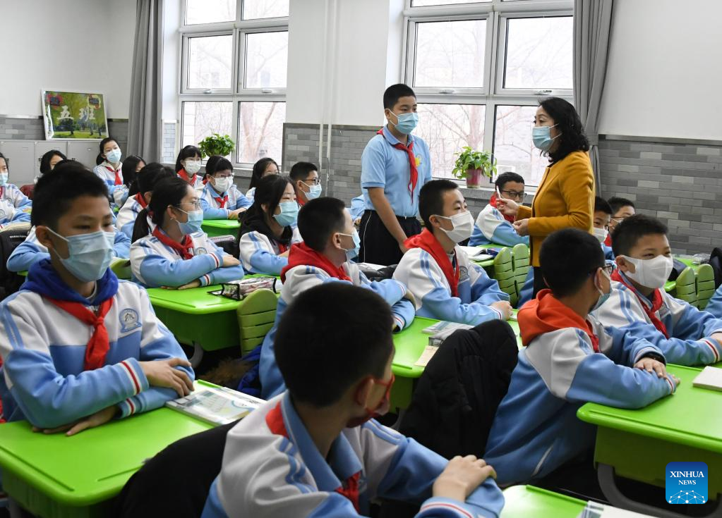 Students attend a class in the High School Affiliated to China Agricultural University in Beijing, capital of China, Feb. 21, 2022.