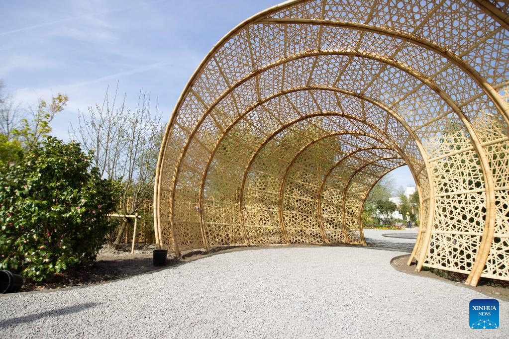 Photo taken on April 11, 2022 during a press preview shows China's Pavilion at Floriade Expo 2022 in Almere, the Netherlands. Floriade Expo 2022, a world horticultural exhibition, is set to be held in Almere from April 14 to Oct. 9. (Photo by Sylvia Lederer/Xinhua)
