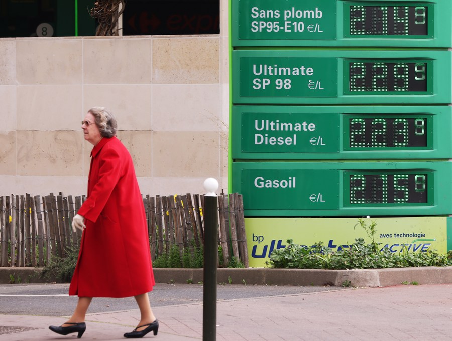 Fuel prices are displayed at a gas station in Paris, France, March 16, 2022. (Xinhua/Gao Jing)