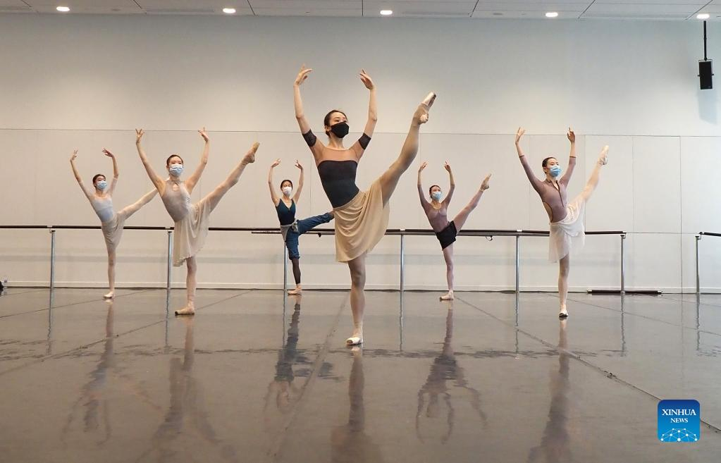 Dancers of Shanghai Ballet participate in a training course in east China's Shanghai, June 1, 2022. (Xinhua/Ren Long)